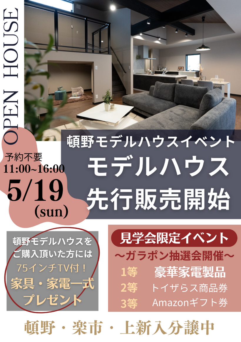 先行販売を記念して、5/19(日)の見学会にてガラポン抽選会を開催いたします!
