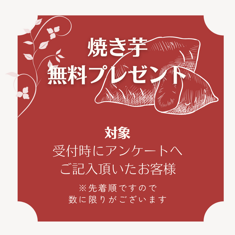 イベントにご参加頂いたお客様には焼き芋を無料でプレゼント!さらにキッチンカーのメニューと引き換えできる無料券をご利用できます!