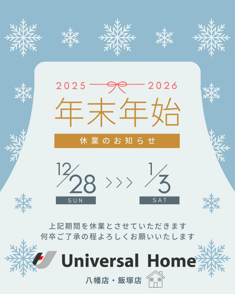 2025年12月25日(木) イベント・見学会 < お知らせ NEW 年末年始のご案内 本年も、沢山のご家族の夢のマイホームご建築に携わる事が出来ました。 スタッフ一同感謝いたします。 今後も沢山の幸せのお手伝いを精一杯させていただきます!! 皆様良いお年をお迎え下さい
