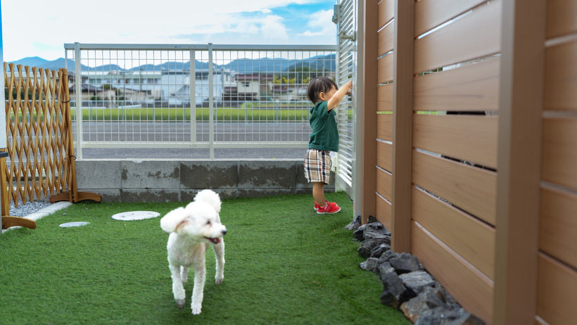リビングからも、ダイニングからものぞけるお庭はお子様とワンちゃんが安心して遊べますね♪