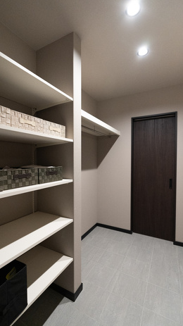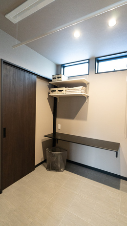 広い脱衣室なので洗濯物を干したり、アイロンをかけたりと