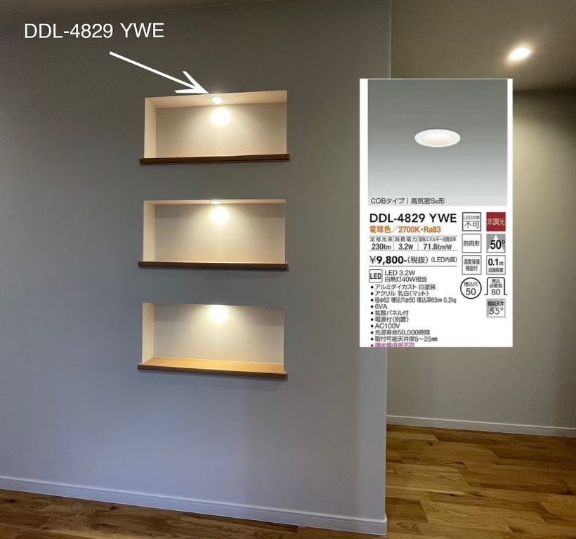 2025年03月15日(土) スタッフブログ < お知らせ 照明付き3段ニッチ 実例紹介 こんにちは、工務の林です 今回は照明付きのニッチの実例をご紹介します 3段ニッチでDAIKOさんのダウンライトを使用しています ホールの照明器具をわざと少なくして雰囲気を出す工夫を行なっています 是非、ご参考ください