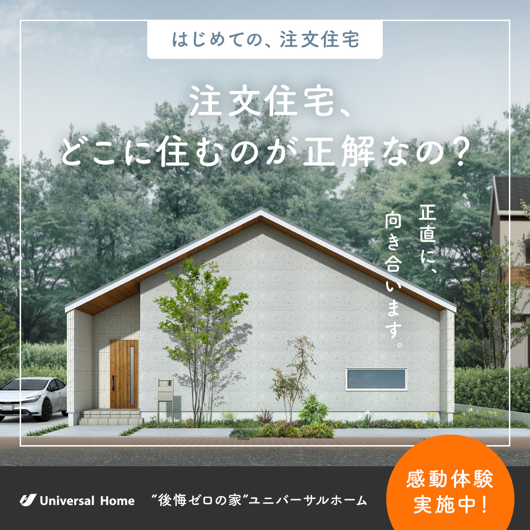 2026年01月30日(金) スタッフブログ < お知らせ NEW 完成現場・構造現場・お引渡し後のお家の見学会 初めての注文住宅、まず考えることは【どこに住む?】 一生を過ごす町、環境、一番最初に一番悩む部分。 実際に注文住宅を建てた先輩達はどうやって選んだのか? そして住んでみてどうだったのか? 実際に完成した現場を見学して、 お引渡し後の先輩のお話を聞いて、 一緒に素敵なマイホーム計画を進めて行きましょう♪ ユニバーサルホーム八幡店・飯塚店では、 実際のお客様のお家をご案内させていただいております。 お気軽にお問い合わせください(^^)/ ※見学会は予約制となっております。 まずはお問合せ下さい♪