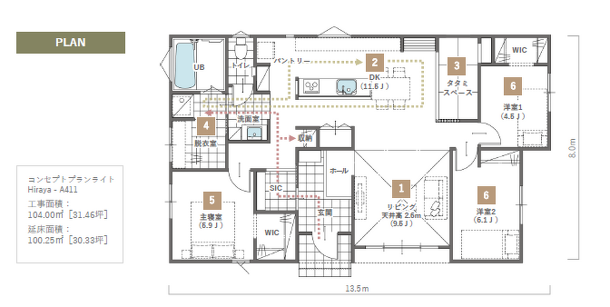 「家事のしやすさ」と「収納の充実」がテーマの平屋プラン