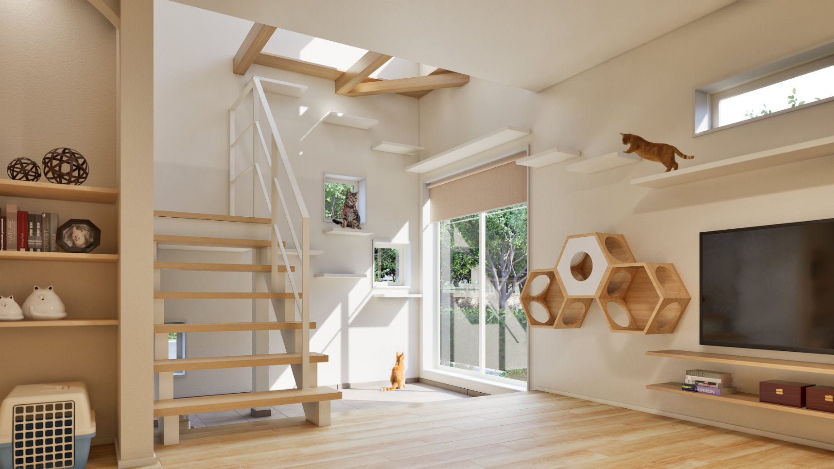 人にとってもペットにとっても過ごしやすい間取りができるのは注文住宅ならではのポイントです。ユニバーサルホームでは、土間スペースを利用したペット専用のお部屋やキャットウォークに対応した間取りプランを一緒に考えていきます。