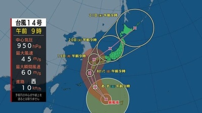 今日は9月19日。昨夜台風14号が襲来しまして夜中の暴風で