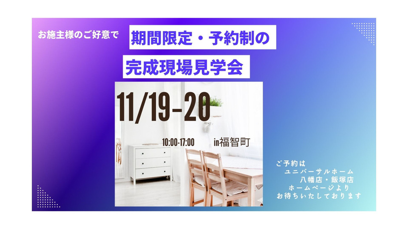 只今ユニバーサルホーム八幡店・飯塚店では毎月一回の「完全予約制見学会開催」を
