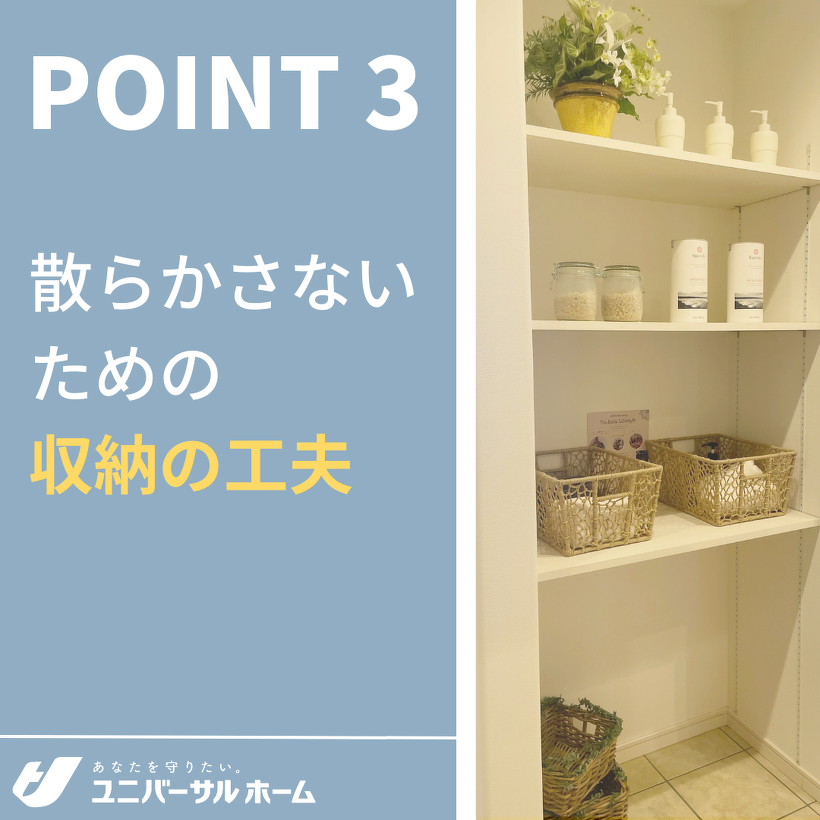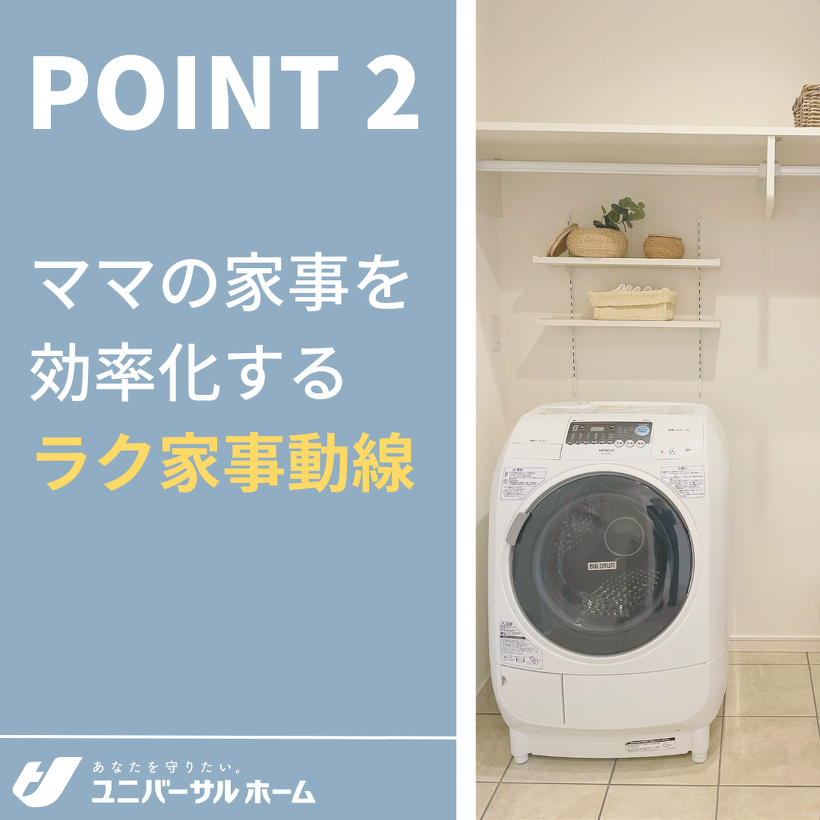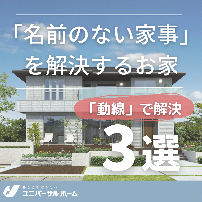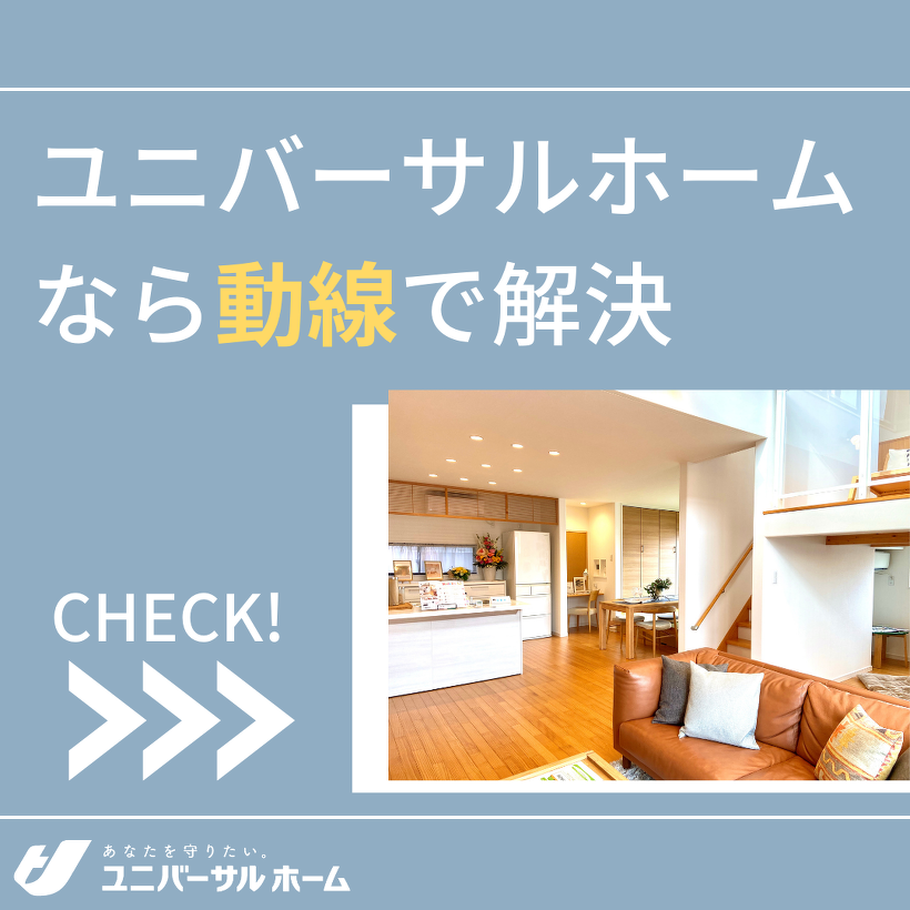 そんなお悩みを解決するために、日々の生活の工夫や家族と約束事を決めることなどが大切になってきますが、ユニバーサルホームでは間取りの「動線」によって、家事の負担をぐっと減らすことができるのです!
