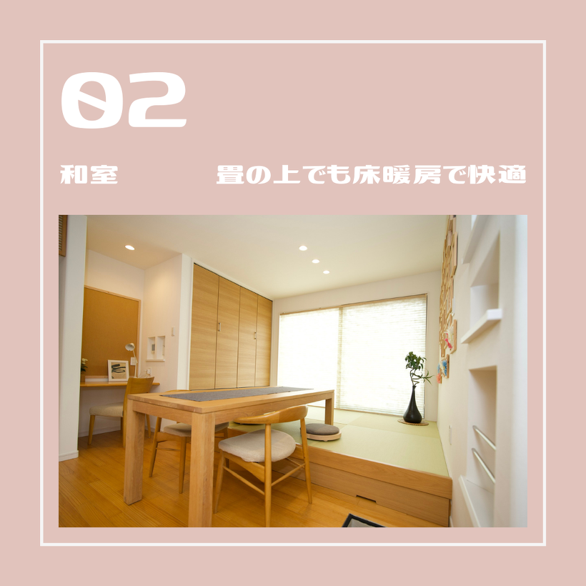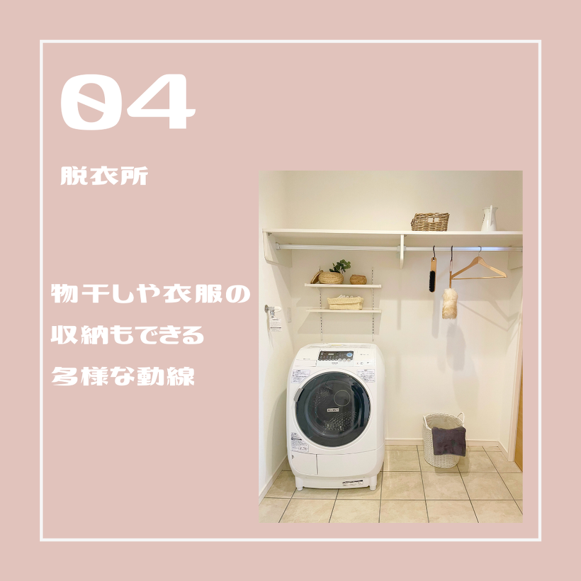 04:物干しや衣服の収納もできるので、家事の負担を減らすことができます。さらに、床暖房で冬でも寒さの心配はナシ!