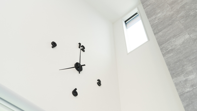 吹き抜け空間に設置されたウォールクロックもポイントです。