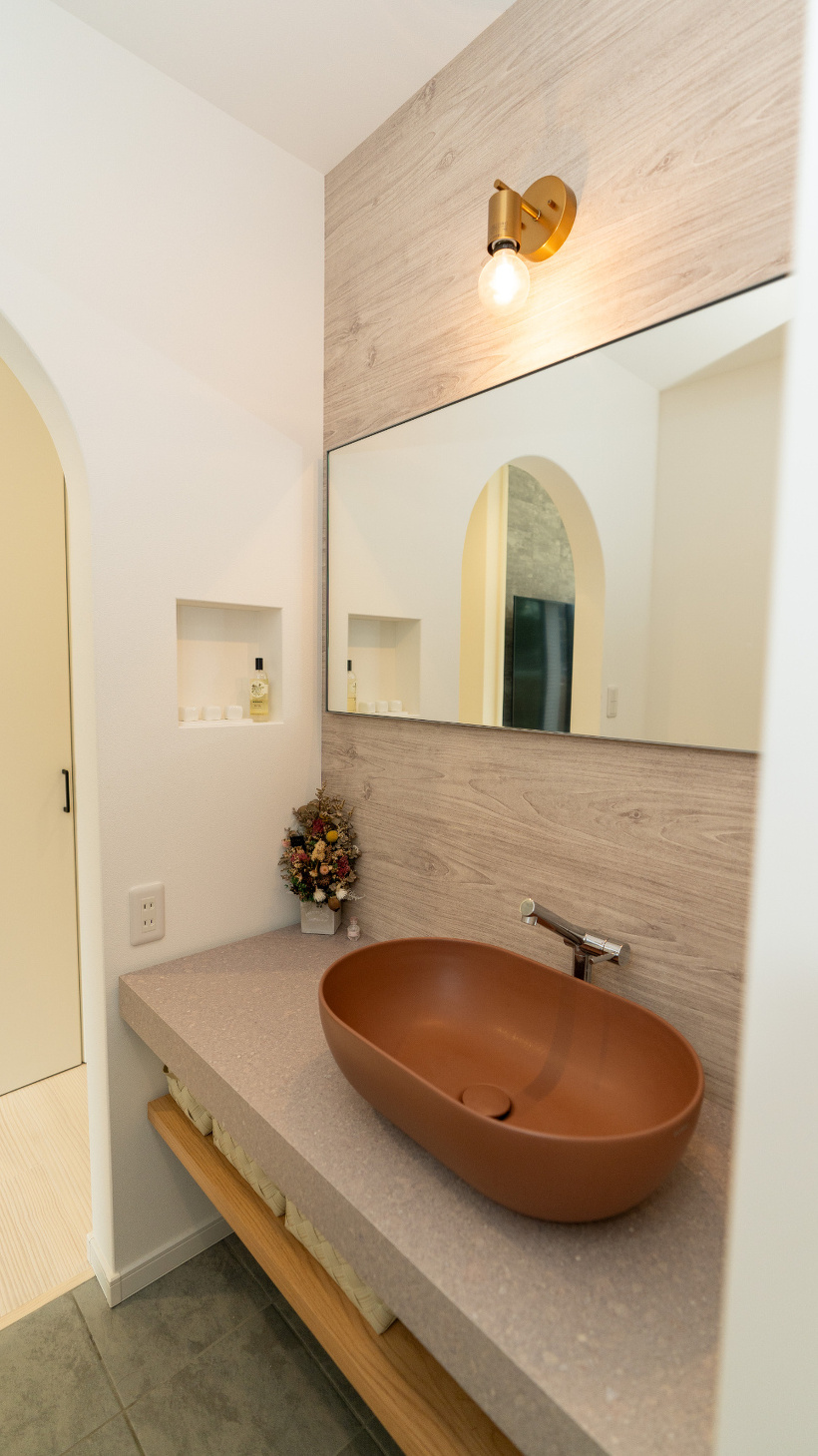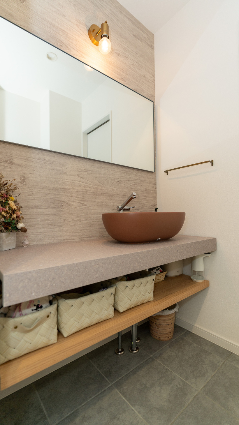 洗面ボウルはサンワカンパニー「Tエッジオーバル/マットーネ」。