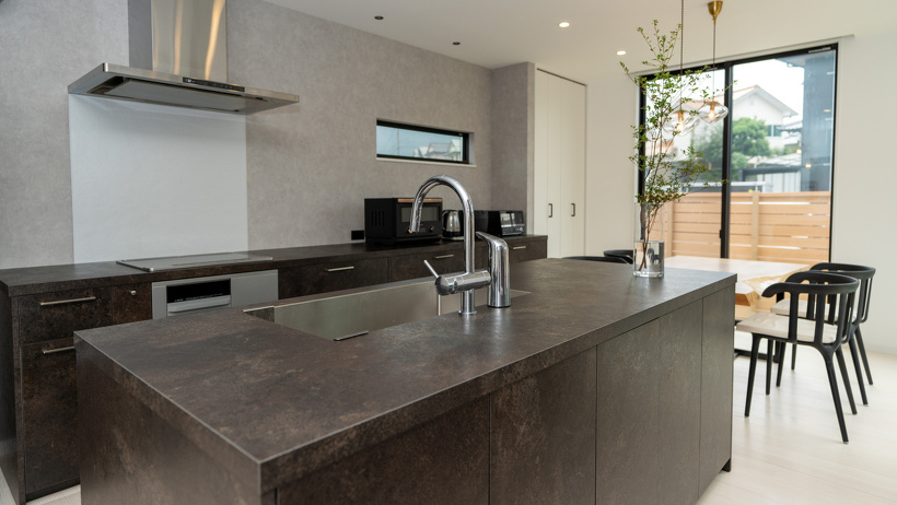 カウンターは上から「エイジングストーン」、カスタムカウンターのオークを採用。