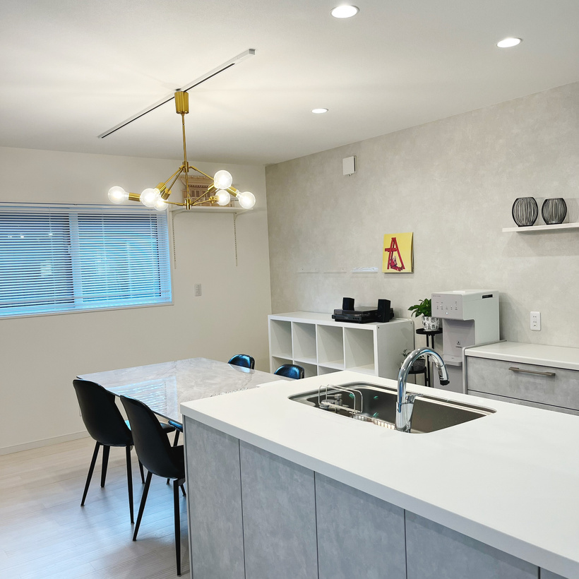 グレーの壁紙や小物等の差し色により、ナチュラルモダンな雰囲気で統一されています。