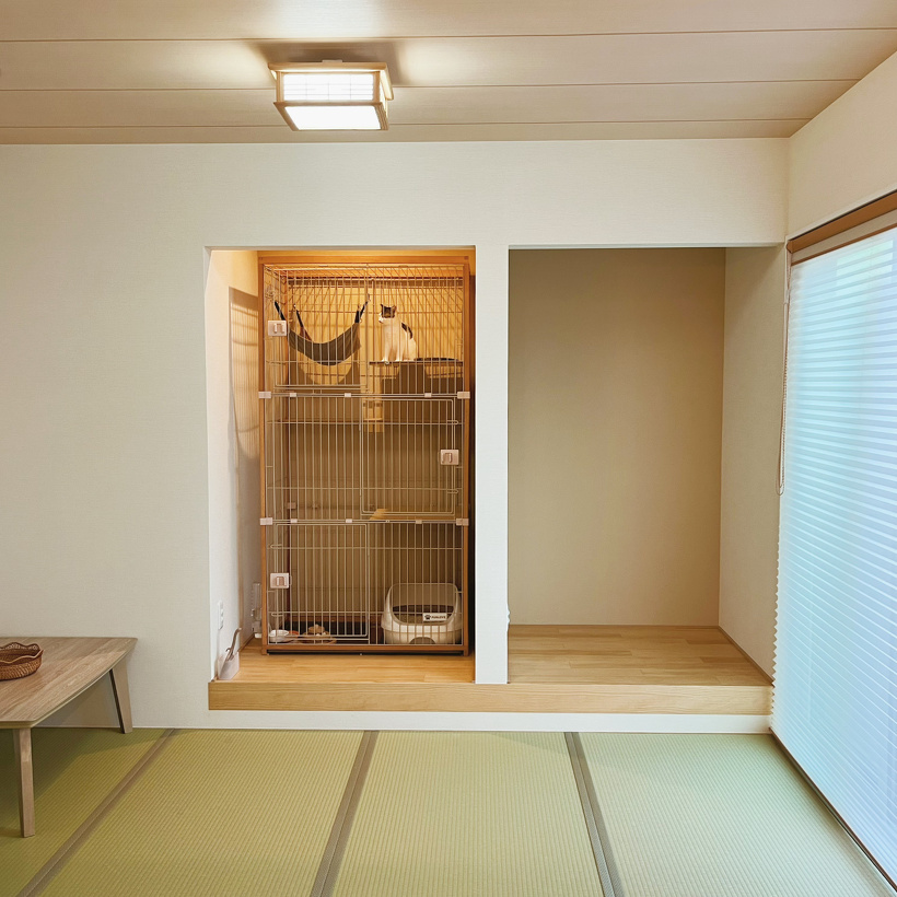 和室は客間として利用できるほか、普段は猫ちゃんがくつろげるお部屋として活用されています。