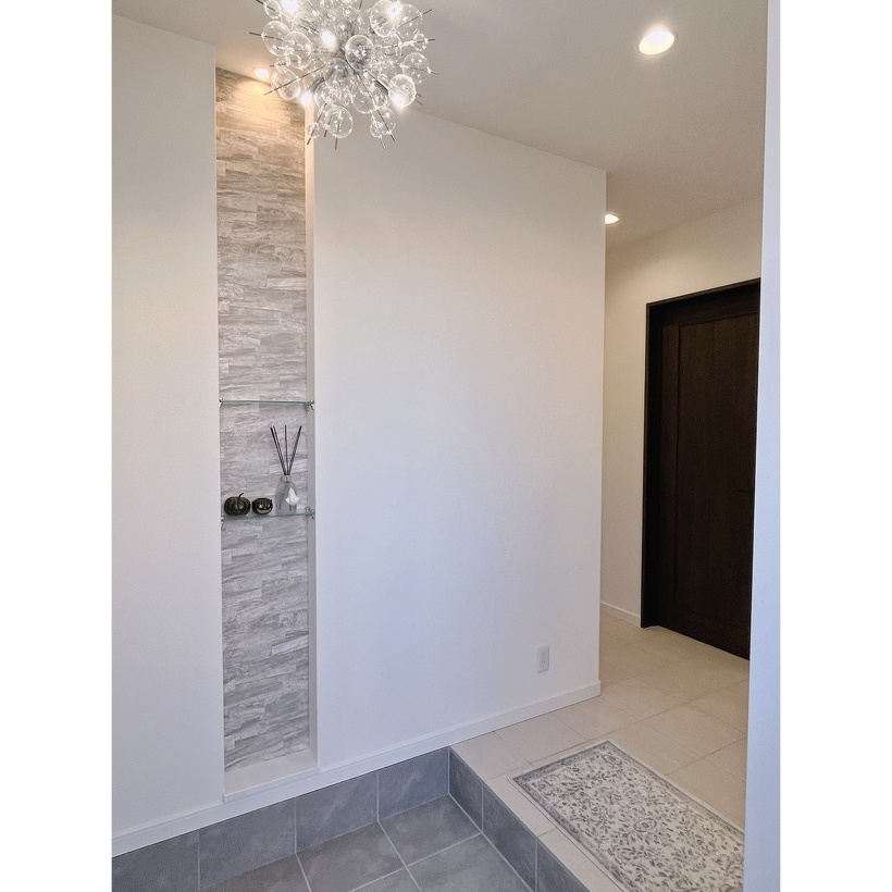 外観含めて全体的にグレーと白を基調としており、クールモダンで柔らかな雰囲気がマッチしたお家に仕上がりました。