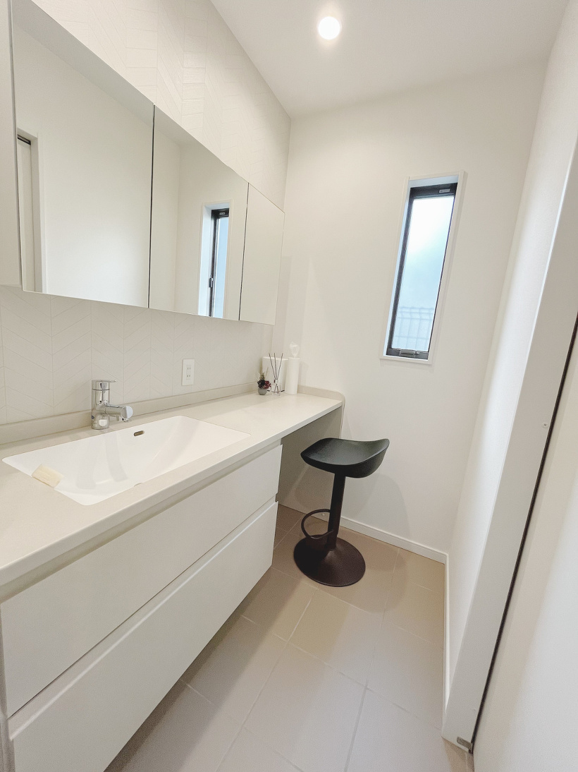 白を基調とした空間。鏡やカウンターも広く、化粧スペースとしても活用できます。