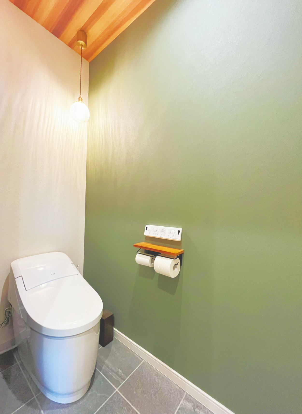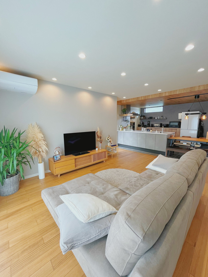 ナチュラルな木の温もりとグレー・ブラックのアクセントがバランスよく組み合わさっています。