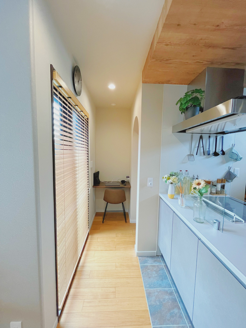 キッチン横にはカウンターを設け、ワークスペースとして静かに作業できる空間となっています。