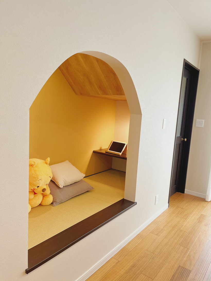 階段下に造作されたヌックスペースは、畳の上で勉強したり読書をしたりなど、ほっと一息つける場所となっています。
